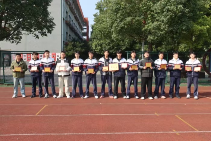 在热烈的掌声中,两队队员依次上台,从校领导手中接过了象征汗水与荣光的“学校精神铸造奖”奖牌。这一刻,不仅是对他们卓越表现的肯定,更是对东华精神的生动诠释。