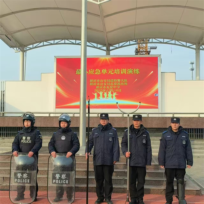 为进一步加强校园安保工作,提高应对突发暴力事件的能力,12月10日下午,瓦窑中学邀请新沂市公安局巡特警大队、新沂市公安局瓦窑派出所的警官们,为学校安保人员开展了“最小应急单元”防爆培训演练。