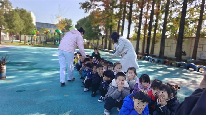 “呜——呜——”上午10时,消防警报声响起,演练正式开始。各班教师立即停止一切活动,迅速组织幼儿用湿毛巾捂住口鼻,弯腰低姿,沿着预设的疏散路线,在教师的引导下快速、有序地向操场安全区域撤离。撤离过程中,教师全程留意幼儿状态,及时协助动作较慢的孩子,确保无一人掉队。整个疏散过程紧张而不慌乱,仅用时2分半钟,全园师幼全部安全撤离至指定地点,各班教师迅速清点人数并向演练总指挥陈芹园长汇报。