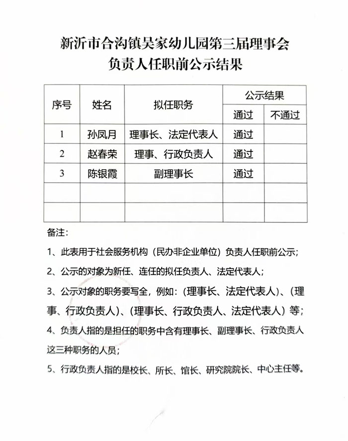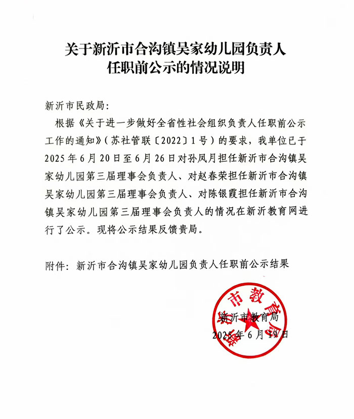 关于新沂市合沟镇吴家幼儿园负责人任职前公示的情况说明