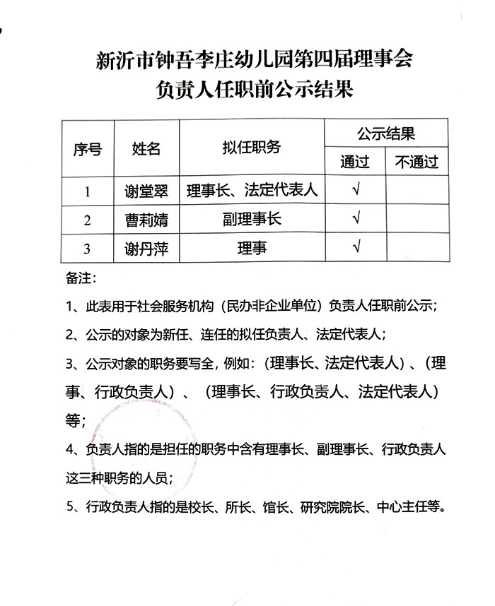 关于新沂市钟吾李庄幼儿园负责人任职前公示的情况说明