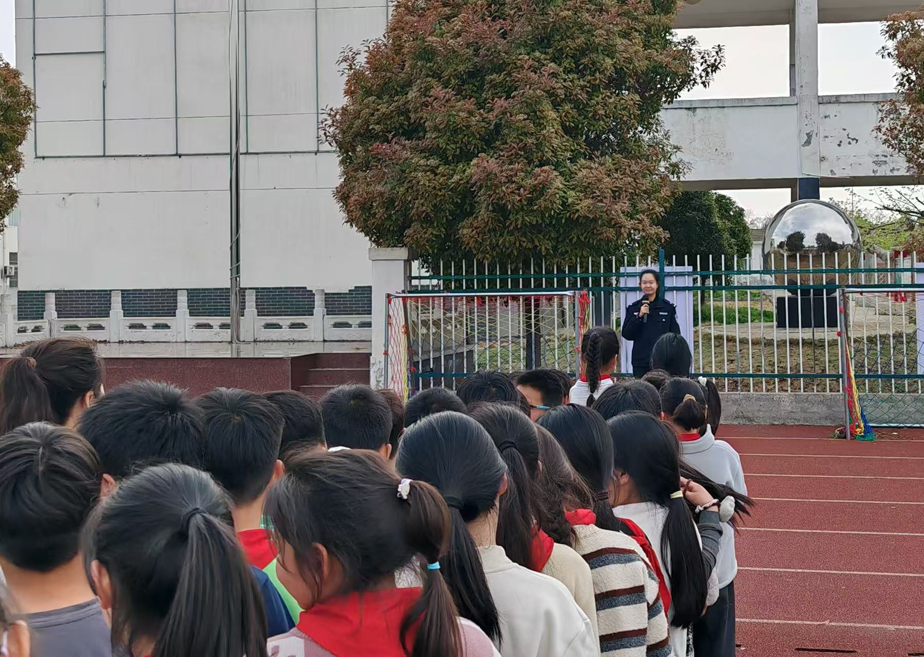 学校校园电子屏滚动播放宣传标语,校园广播定时播报安全知识,家校微信群同步推送科普图文与视频,线上线下同频发力,营造出“人人关注安全、人人守护安全”的浓厚氛围。学校利用周一升旗仪式,开展国家安全教育国旗下讲话,面向全体师生系统宣讲总体国家安全观,讲解国家安全的丰富内涵与重要意义,引导大家树立“国家安全,人人有责”的强烈意识。各班级召开主题班队会,通过案例讲解、视频观看、互动问答等形式,让国家安全、网络安全、反间谍等知识入脑入心。学校还邀请法治副校长进校园,开展法治专题讲座,以案释法,强化师生法治观念。